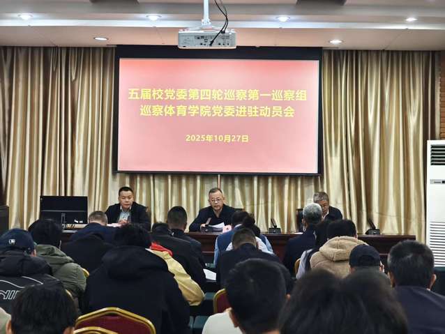 2025年10月27日上午,五届校党委第四轮巡察第一巡察组巡察体育学院党委进驻动员会在中区体育馆学术报告厅召开。校党委巡察工作领导小组副组长牛新民、第一巡察组全体成员、体育学院领导班子成员及师生代表参加会议。会议由体育学院党委书记张荣红主持。